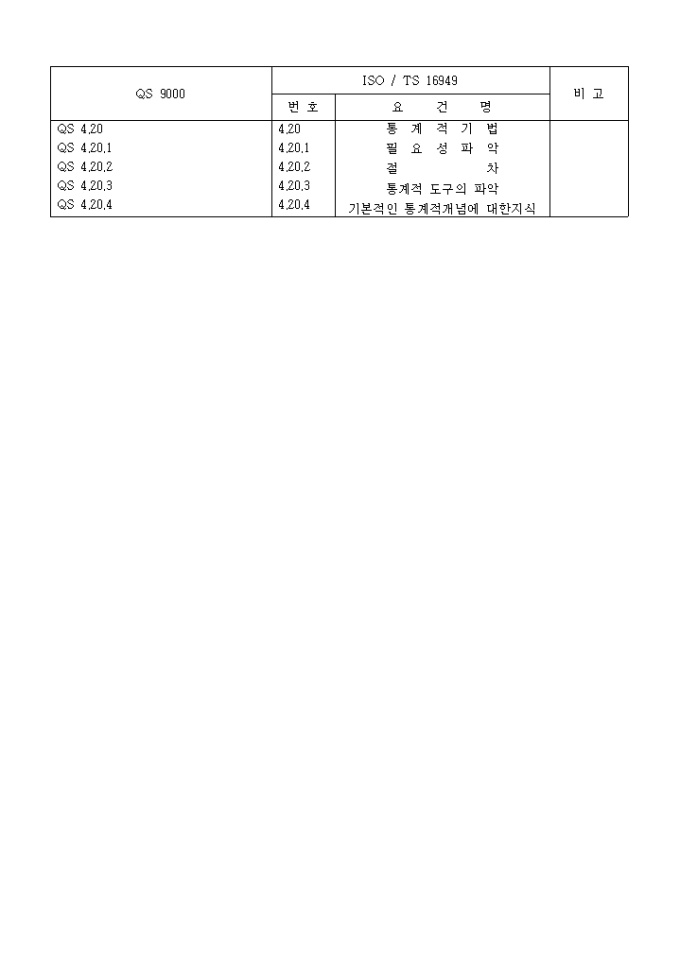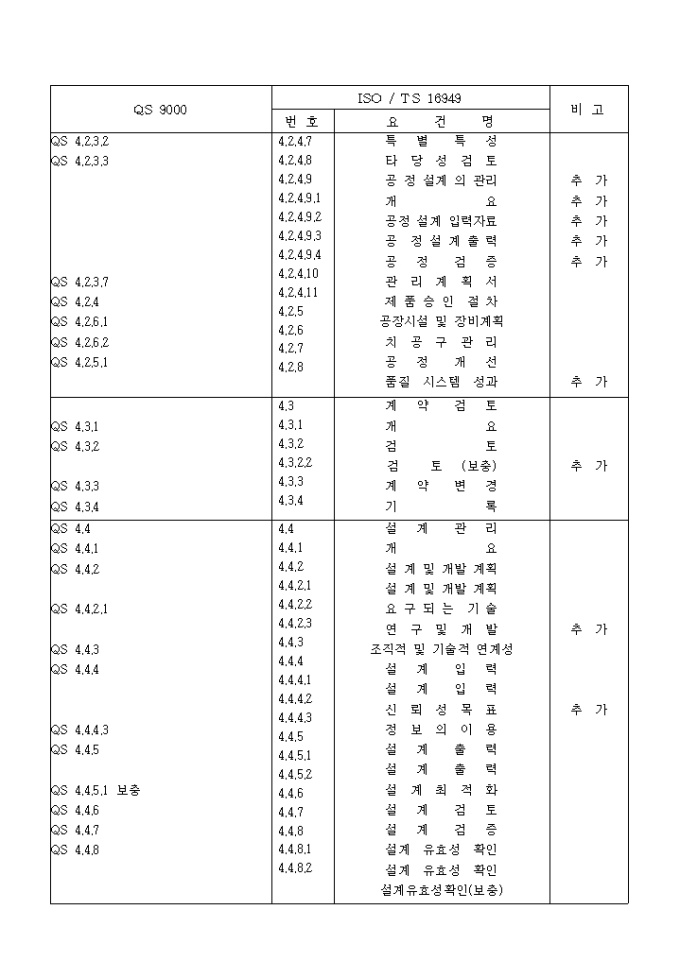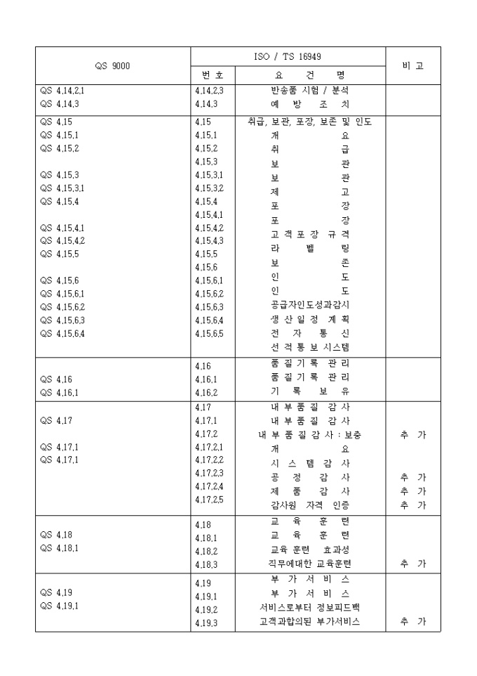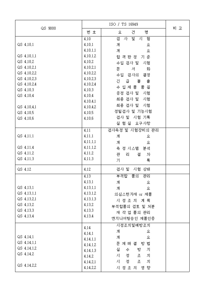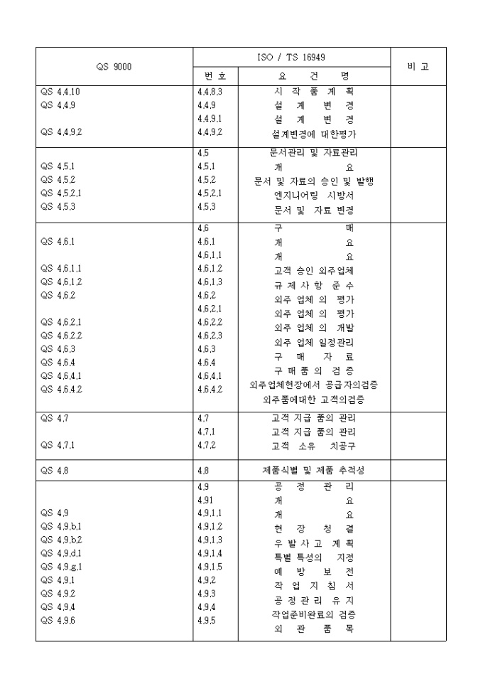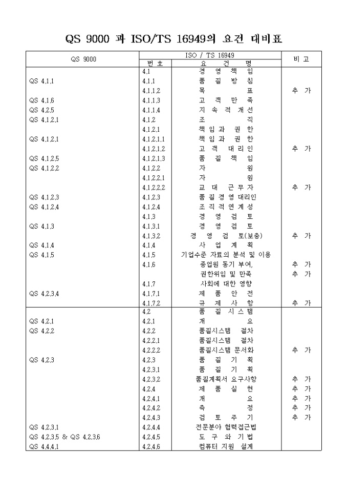 QS9000과ISOTS16949의 요건대비표 양식입니다.