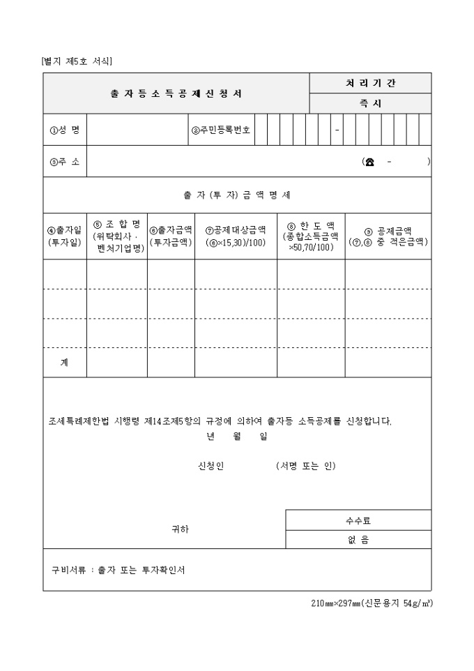 조세특례제한법 시행령 제14조제5항의 규정에 의하여 출자등 소득공제를 신청합니다.