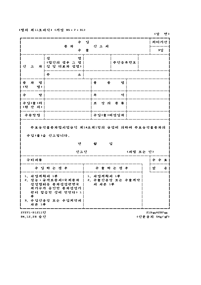 종자(수입, 수출)신고서