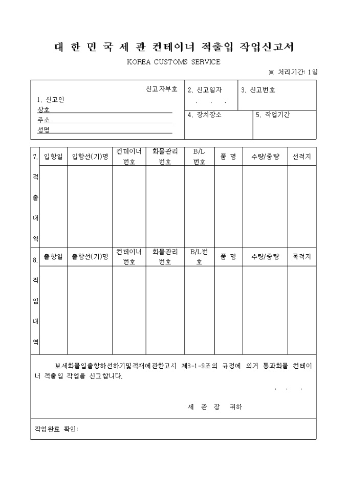 9,000원/월컨테이너 적출입 작업신고서20032.4 서식입니다.