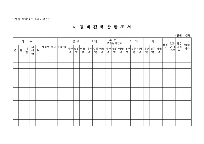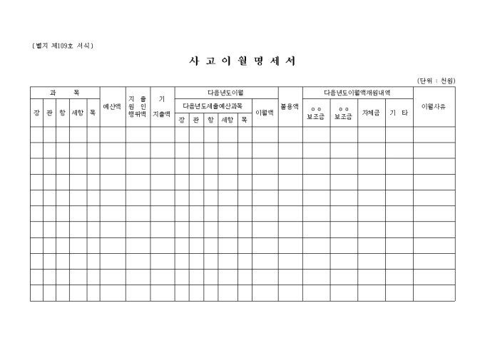 제109호 서식 사고이월명세서