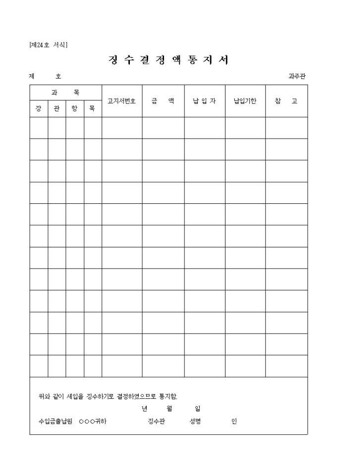 제24호 서식 징수결정액통지서