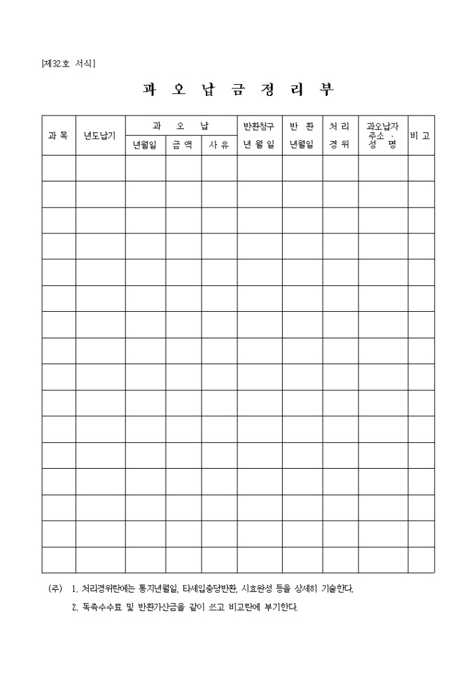 제32호 서식 과오납금정리부