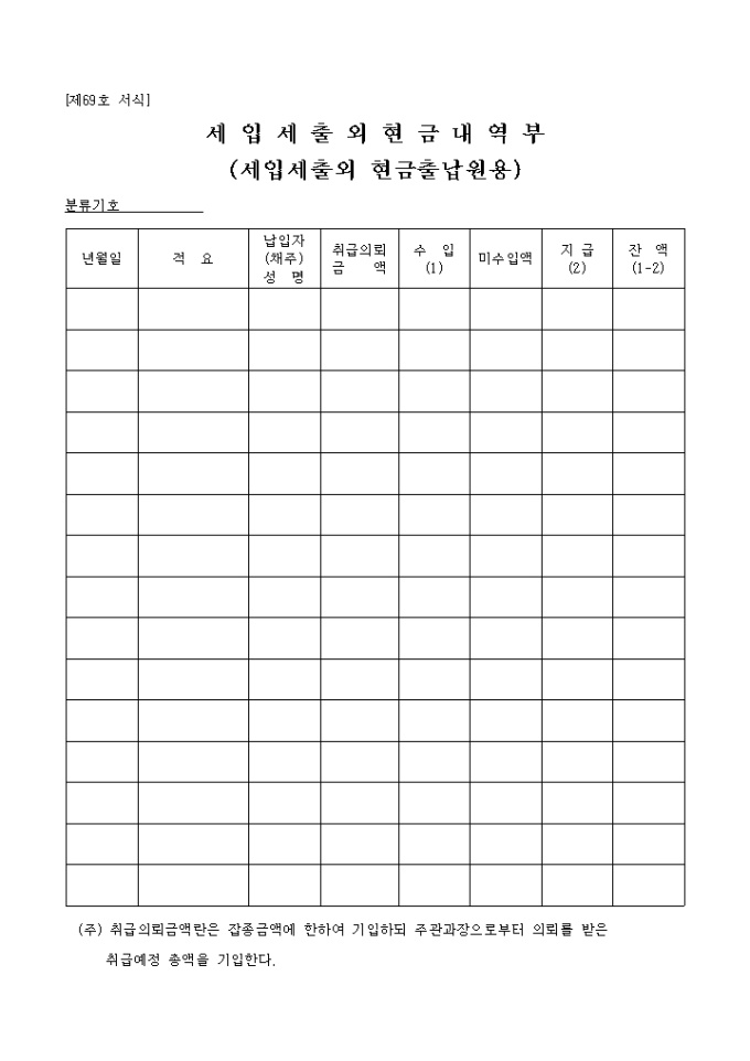 제69호 서식 세입세출외현금내역부