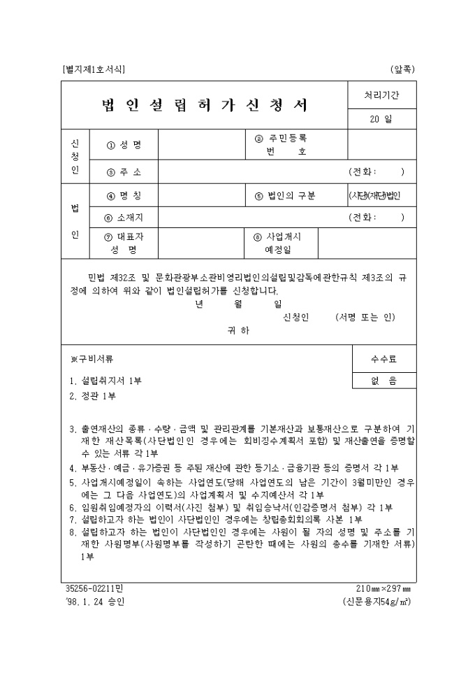 법인설립 허가신청서(문화관광부)
