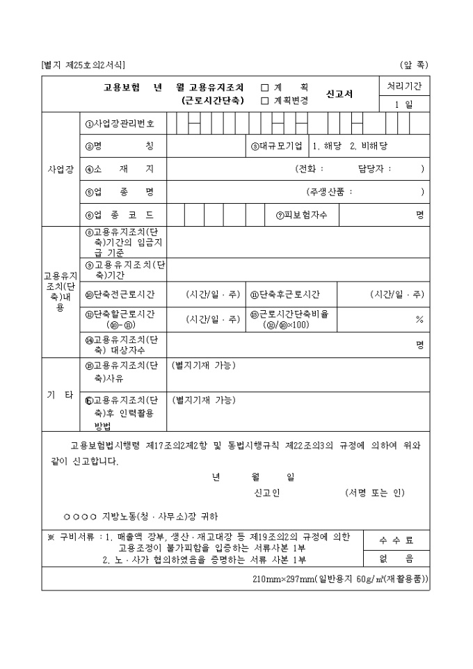 고용유지조치(근로시간단축)계획(계획 변경) 신고서(제25호의 2서식)