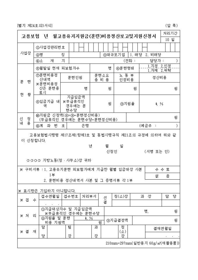 고용유지지원금(훈련)비용정산보고 및 지원신청서(제24호의3서식)