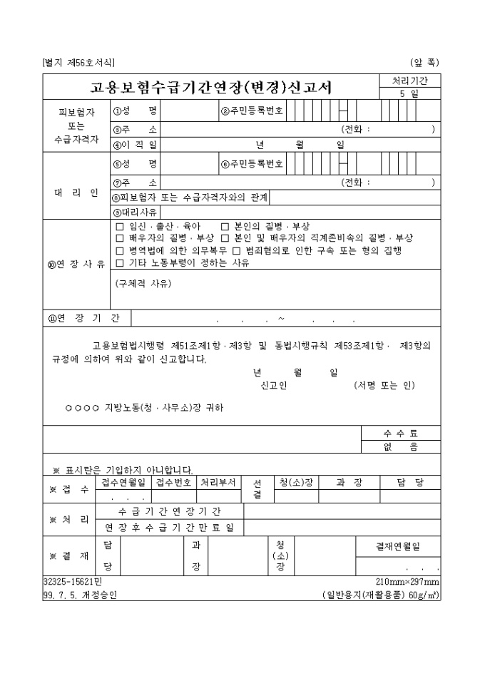 고용보험 수급기간연장(변경)신고서