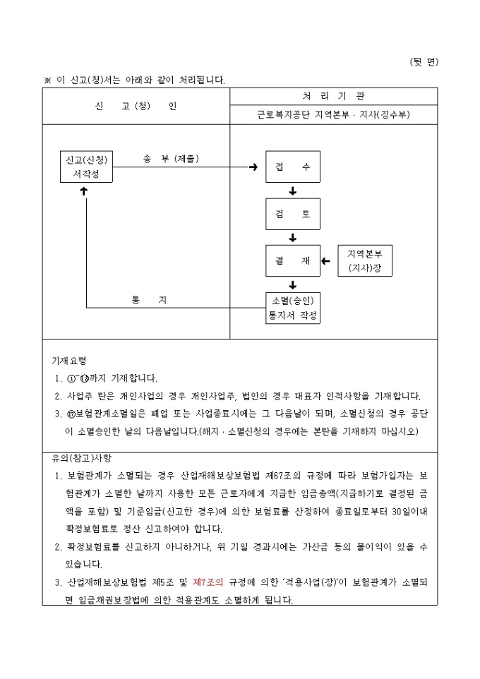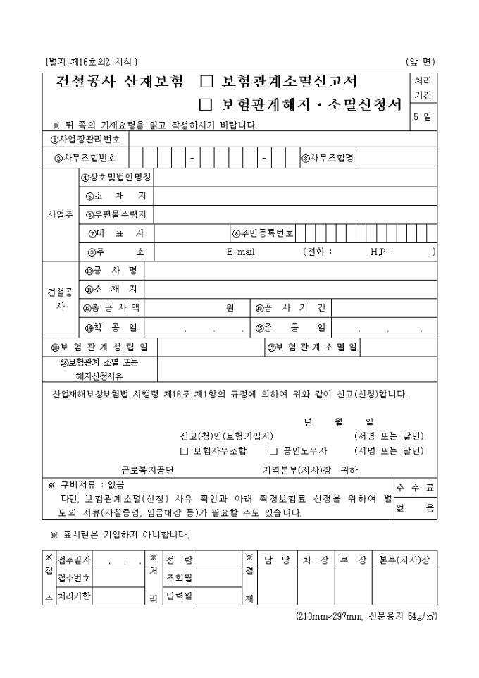 산업재해보상보험법 시행령 제16조 제1항의 규정에 의하여 위와 같이 신고(신청)하실때 사용하시는 양식입니다.