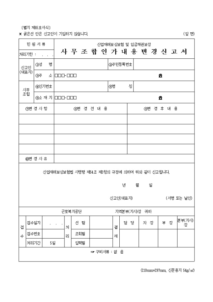 사무조합인가내용 변경 신고서(별지 제65호서식)