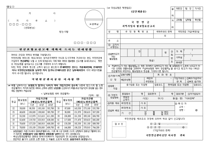 9,000원/월지역가입자 월보험료 신고서 양식입니다.