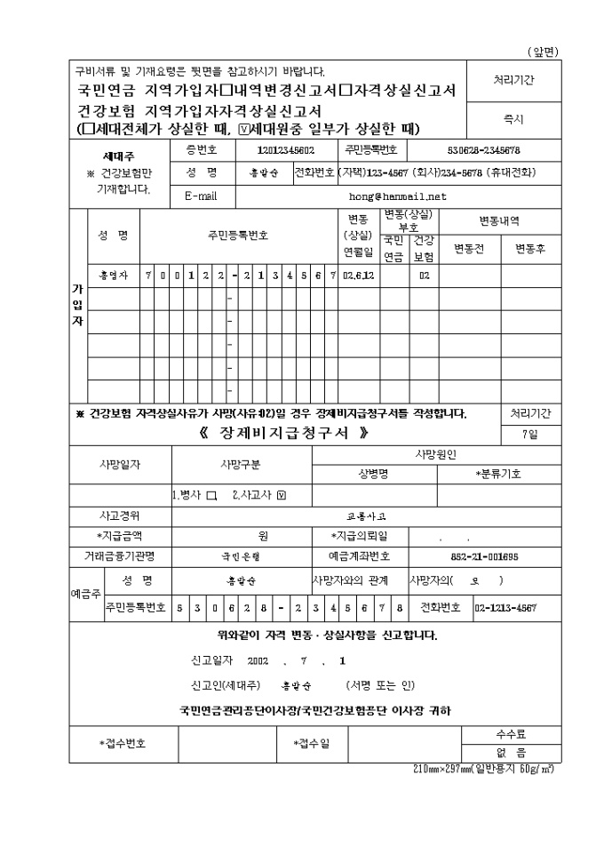 구비서류 및 기재요령은 뒷면을 참고하시기 바랍니다.
