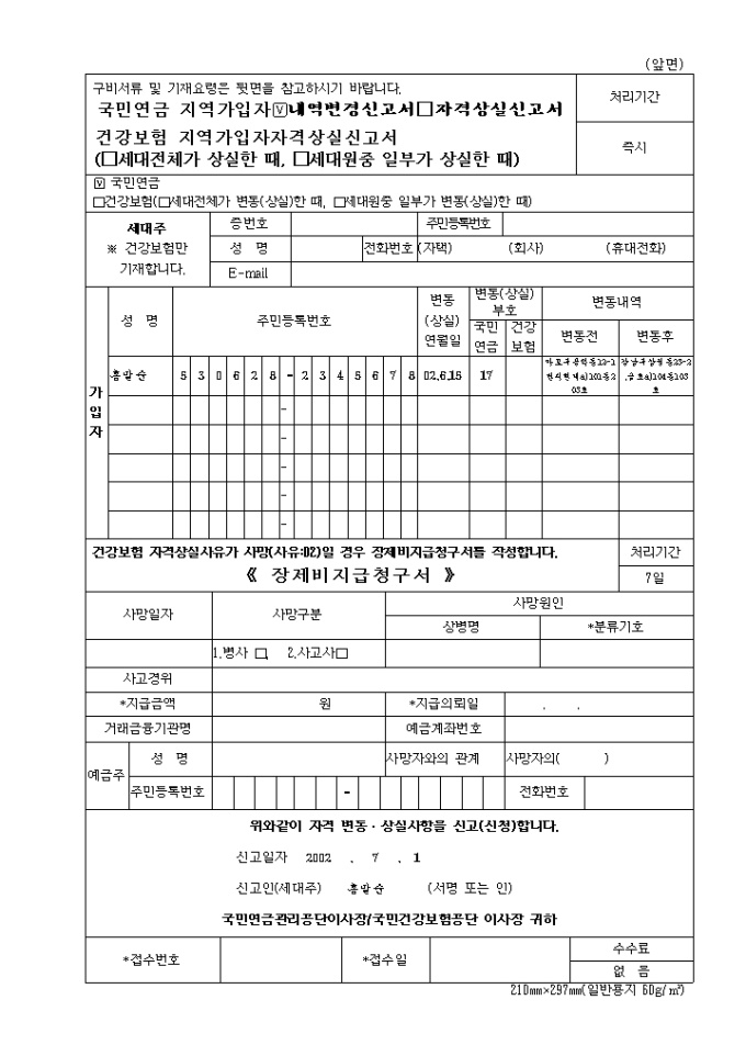 국민연금 지역가입자□내역변경신고서□자격상실신고서