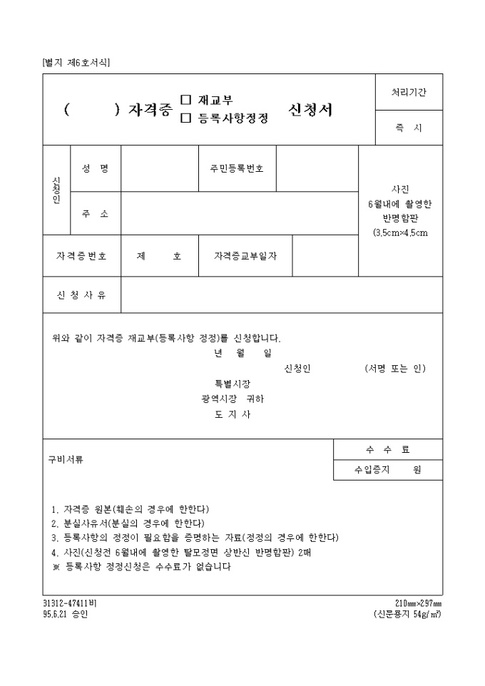 9,000원/월( )자격증 재교부, 등록사항 정정신청서 양식입니다