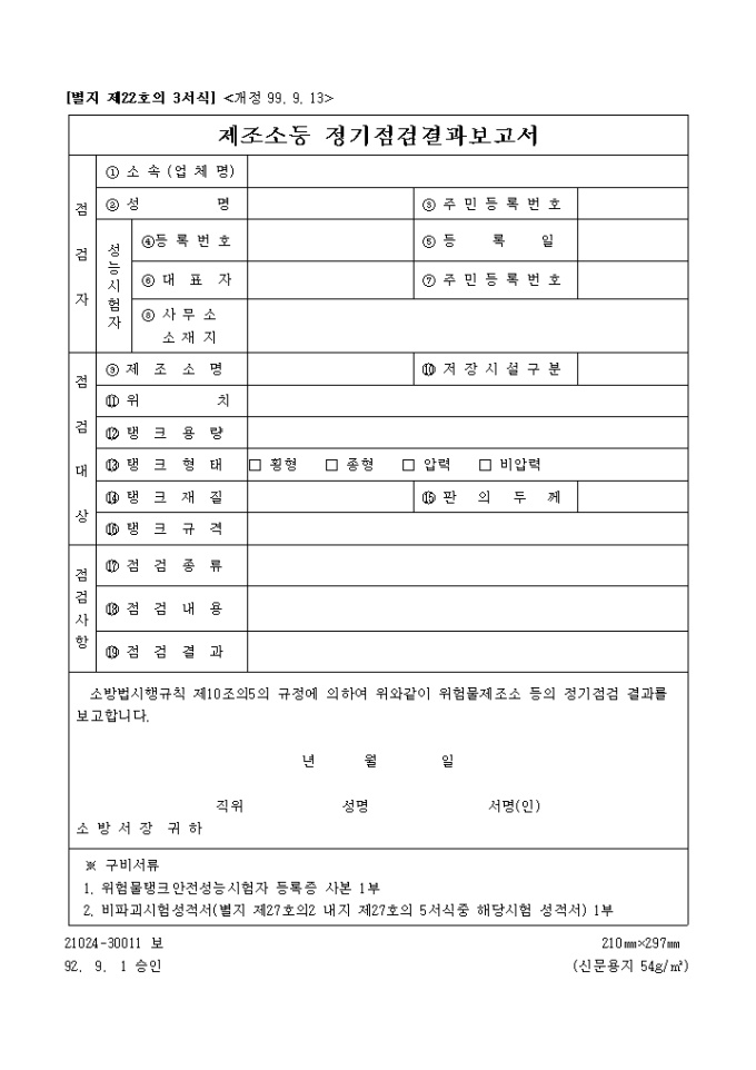 제조소등의 정기점검 결과 보고서(제22호의 3서식)(99.9.13 개정)