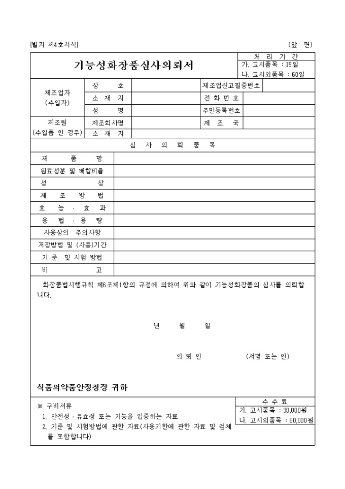 기능성화장품 심사의뢰서