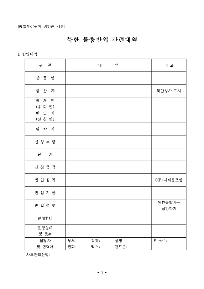 9,000원/월"북한물품반입관련내역" 양식입니다.
