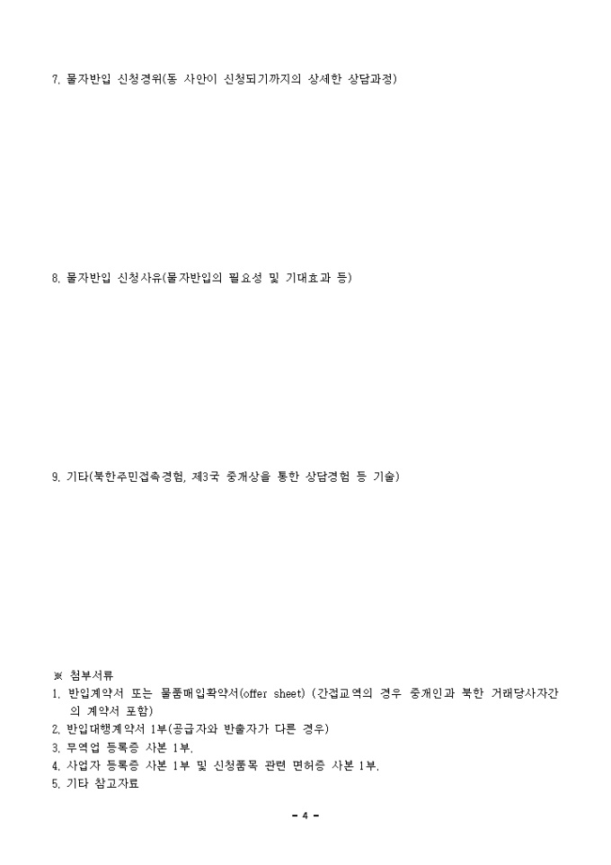 7. 물자반입 신청경위(동 사안이 신청되기까지의 상세한 상담과정)