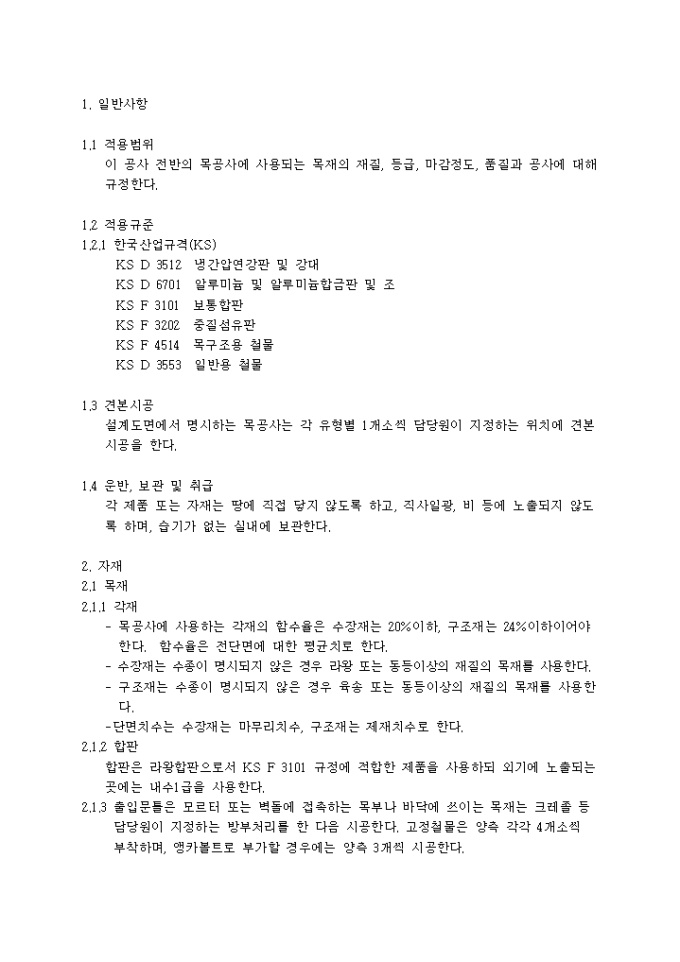 9,000원/월공사 전반의 목공사에 사용되는 목재의 재질, 등급, 마감정도, 품질과 공사에 대해 기술한 계획서입니다.
