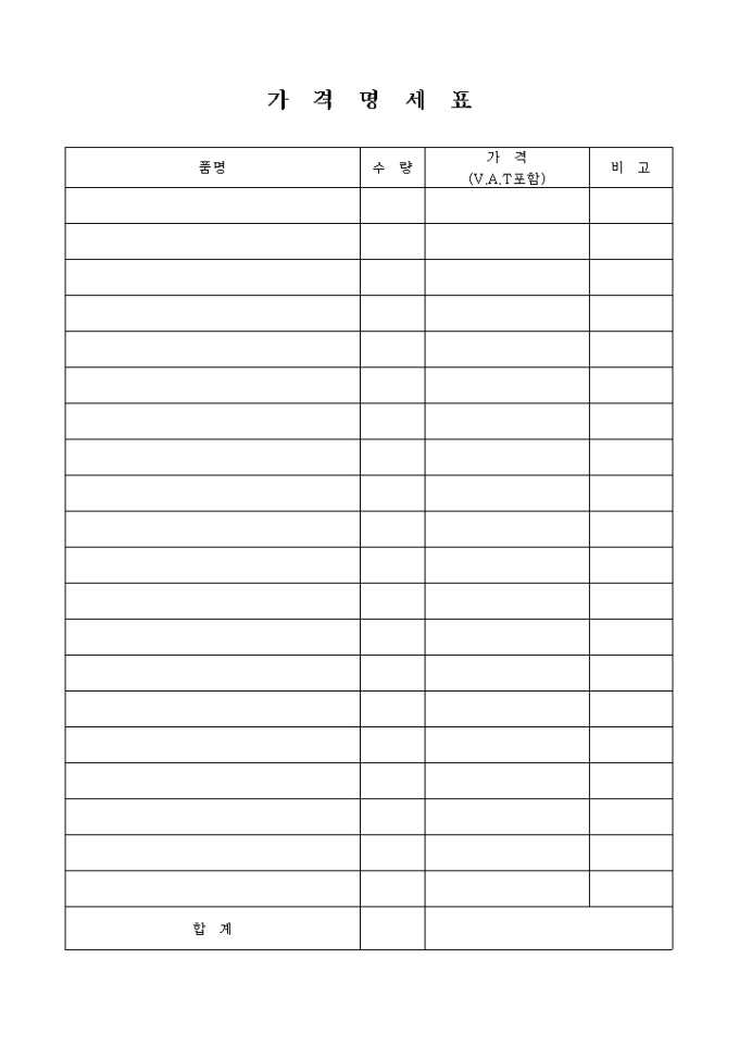 9,000원/월가격에 대한 내역을 기입을 하는 명세서 양식입니다.