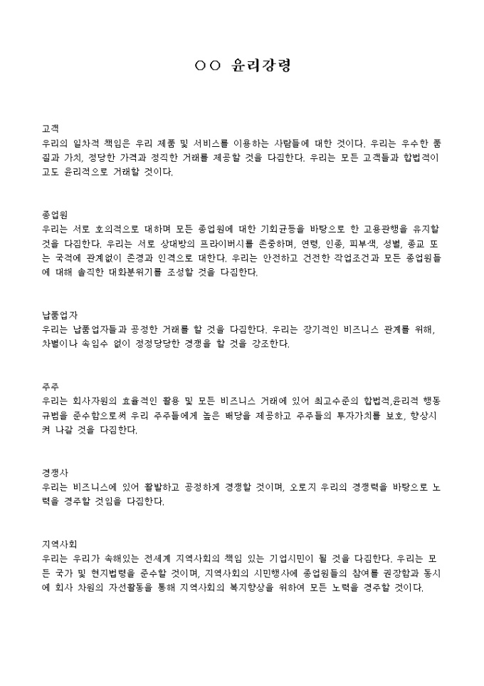 아래의 내용이 있는 윤리강령입니다.