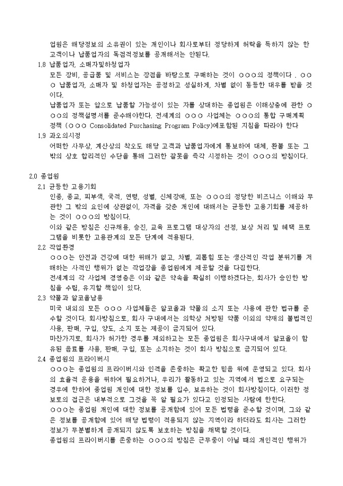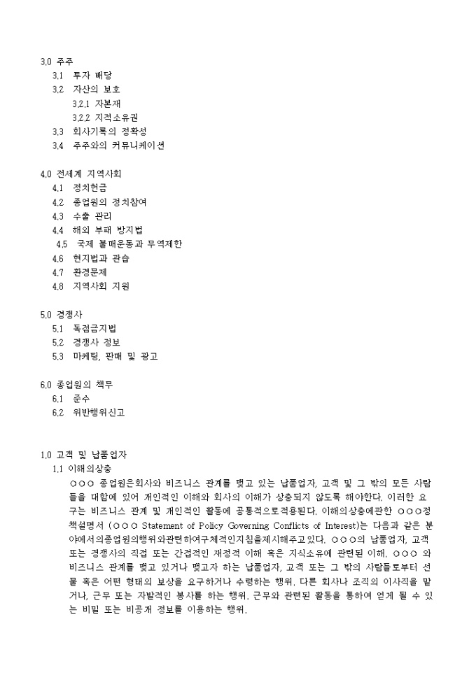 1.0 고객 및 납품업자