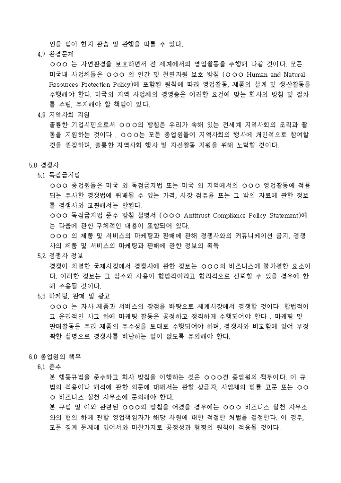 6.0 종업원의 책무