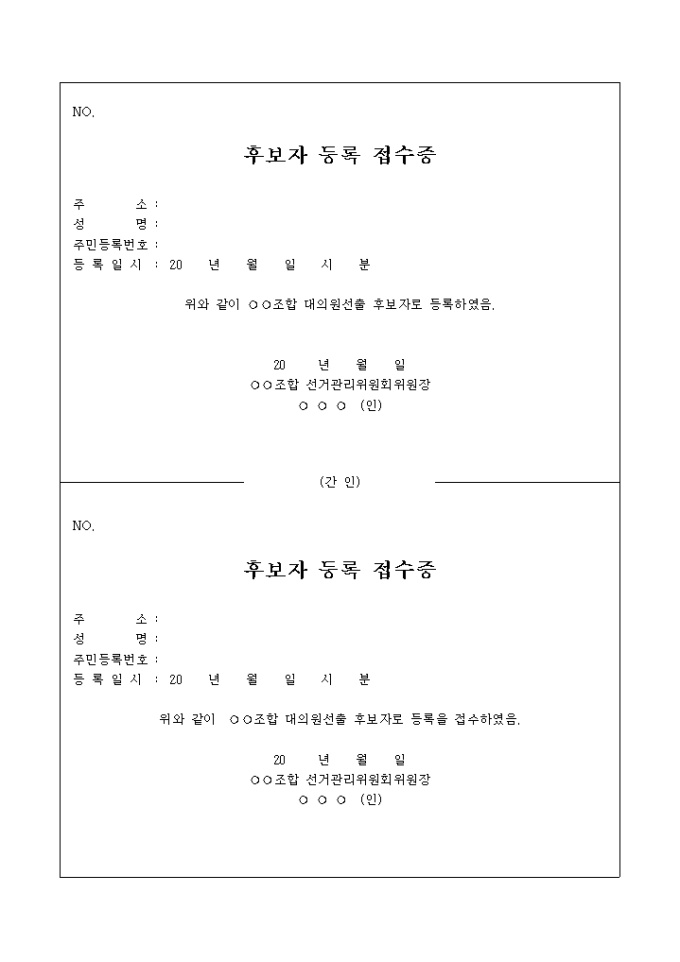 9,000원/월선거 후보자 등록을 증명하는 양식입니다.