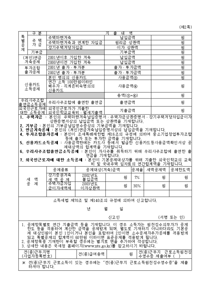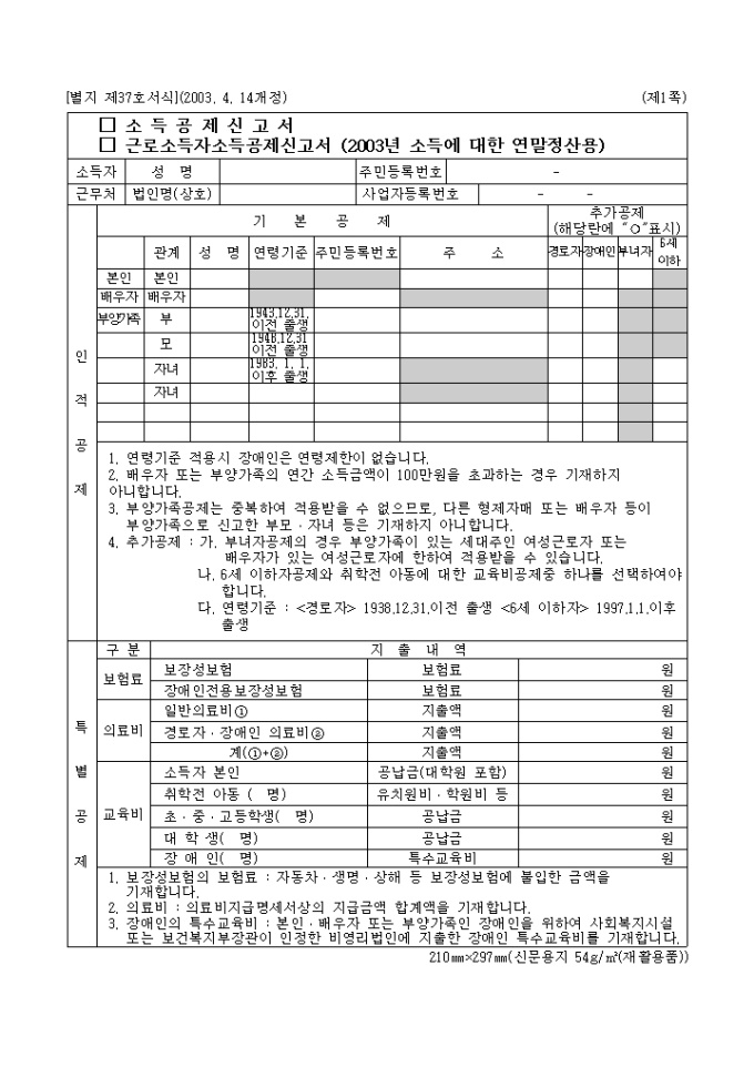 9,000원/월인적사항,특별공제,연금 저축공제,투자조합 출자공제,신용카드 솓그공제,우리사주조합 출연금소득공제,외국인 근로자에 대한 소득공제,세액공제를 기록하는 소득공제신고서,근로소득자소득공제신고서(2003.09.30)입니다.