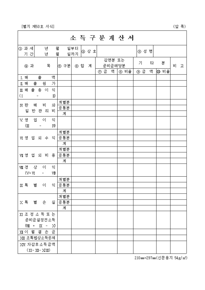 9,000원/월과목별 구분,합계,감면분 또는 준비금 해당분,기타분을 기록하는 소득구분계산서 작성요령(2003.09.30)입니다.