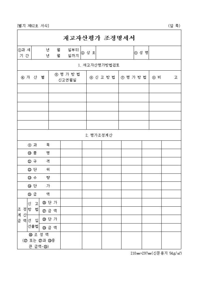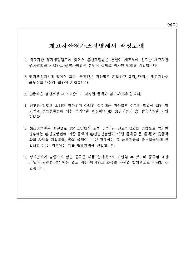 9,000원/월재고자산평가방법검토,평가조정계산 내역을 기록하는 재고자산평가 조정명세서입니다.(2003.09.30)