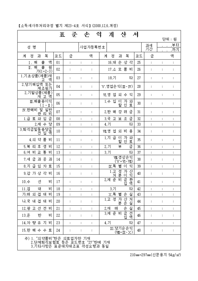 9,000원/월계정과목별 코드, 금액을 기록하는 표준손익계산서(2003.09.30)입니다.