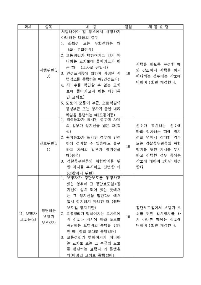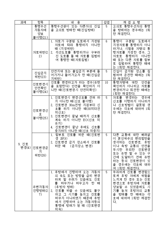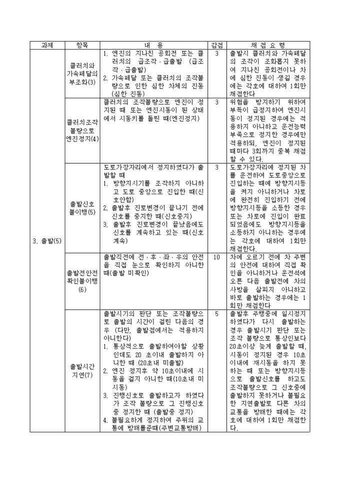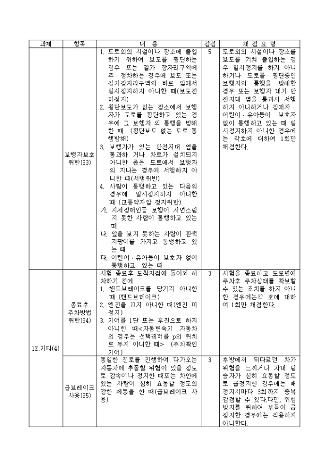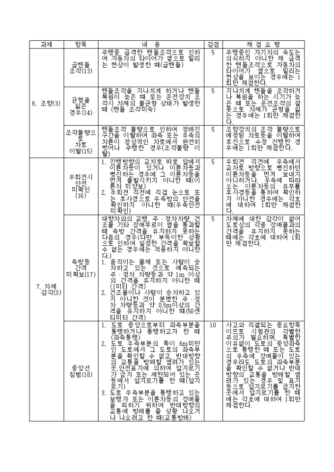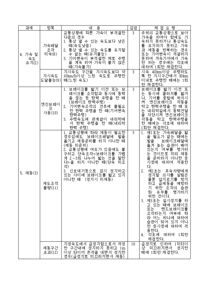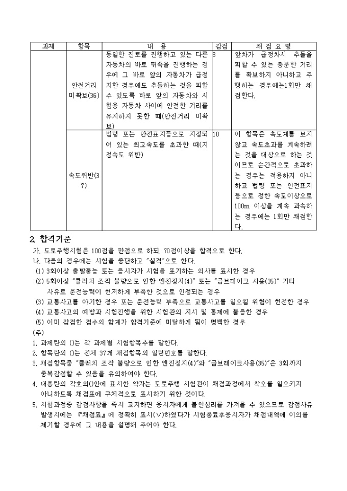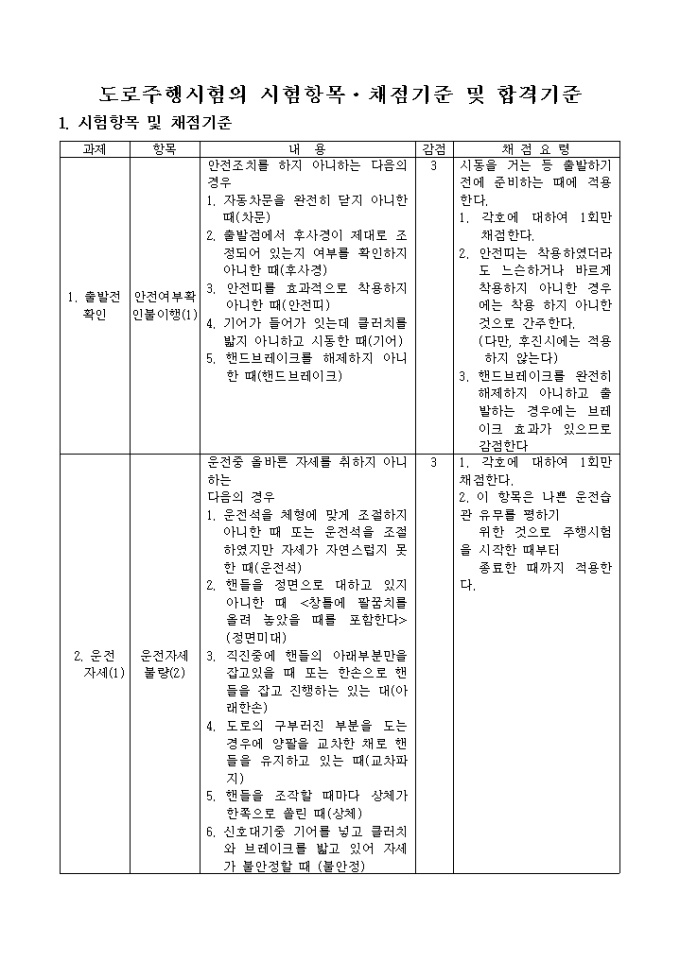 9,000원/월과제 별 항목 및 내용과 감정, 채점요령이 기술되어 있는 도로주행시험의 시험항목·채점기준 및 합격기준 양식입니다.