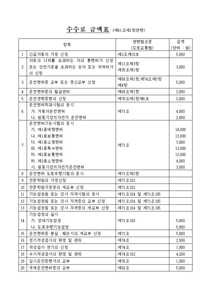 9,000원/월운전면허증 발급 및 운전관련 증명서, 양식 발급시 해당되는 수수료 금액표(영수필증) 표시 양식입니다.