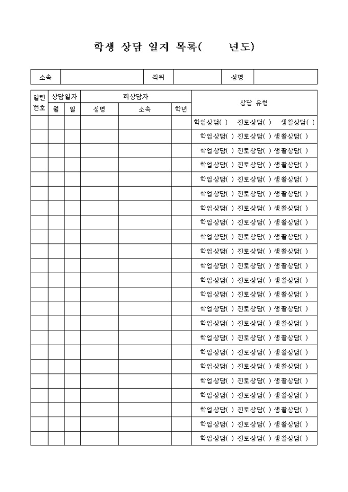 9,000원/월학생상담일지목록 및 상담일지 양식입니다.