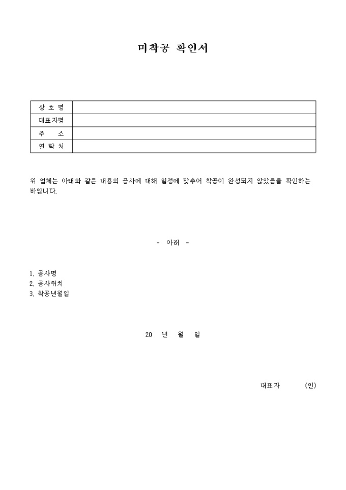 미착공 확인서