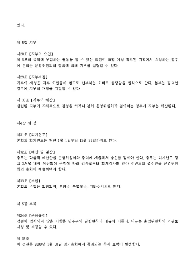 ○○○를 위한 모임 정관