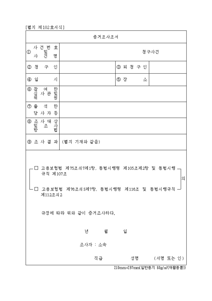 의 규정에의하여 증거조사조서작성시 사용하는 양식입니다.