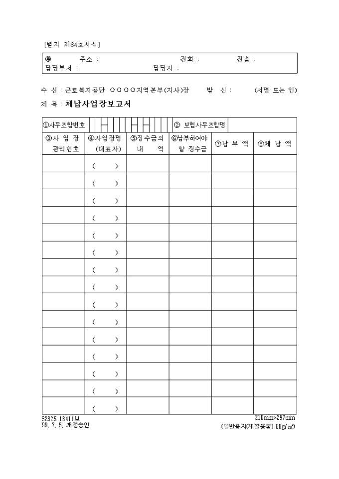 체납사업장 보고서(제84호 서식)(2004-01-08 개정)