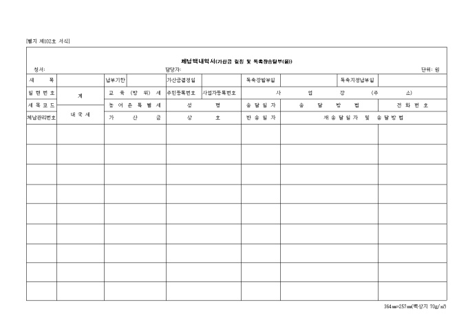 9,000원/월제102호 체납액내역서(가산금결정 및 독촉장송달부(을))
