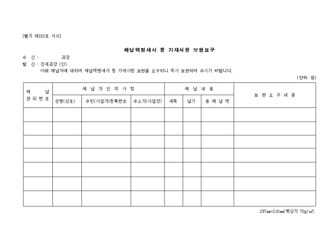 체납액명세서 등 기재사항 보완요구(제103호)
