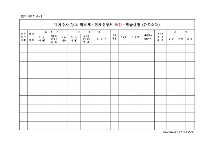 제10호 비거주자등의비과세 면제신청서확인발급대장(근로소득)