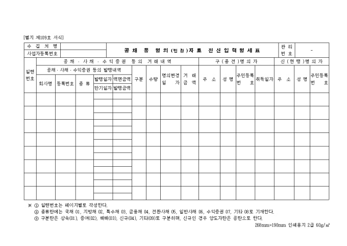 9,000원/월제110호 공채 등 명의(변경)자료전산입력명세표