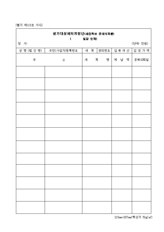 제110호 평가대상제외자명단(채권확보공매의뢰분)