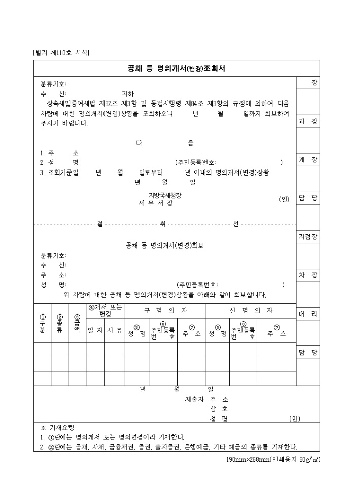 9,000원/월제111호 공채 등 명의개서(변경)조회서