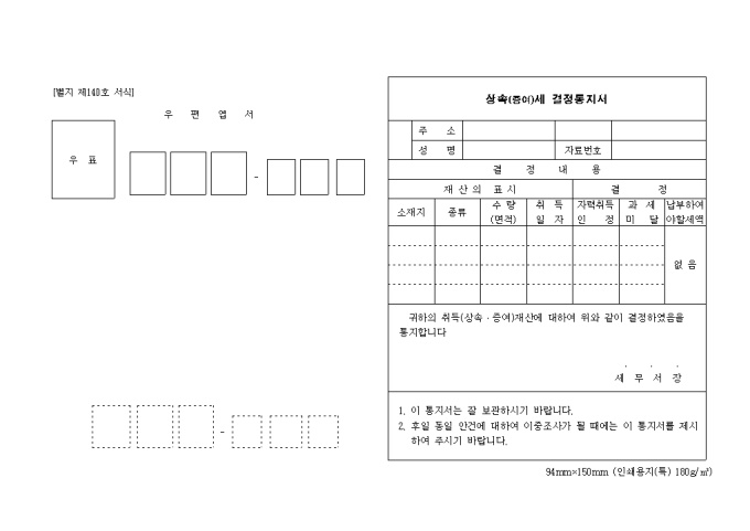 9,000원/월제140호 상속(증여)세결정통지서