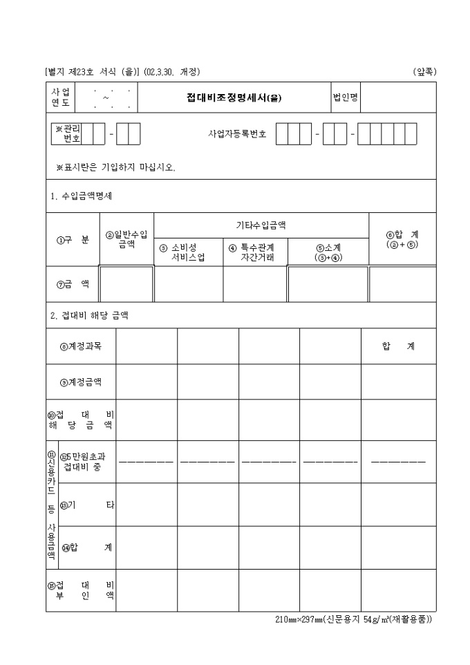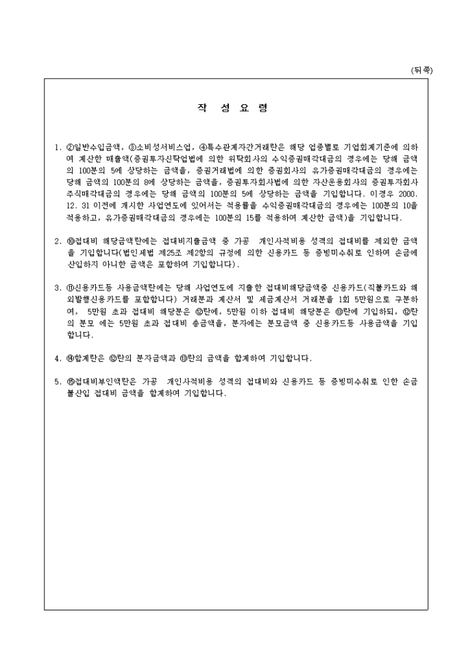 9,000원/월제23호(을) 접대비조정명세서(을)로 수입금액명세,접대비 해당금액을 기록합니다. (2002.3.30. 개정)