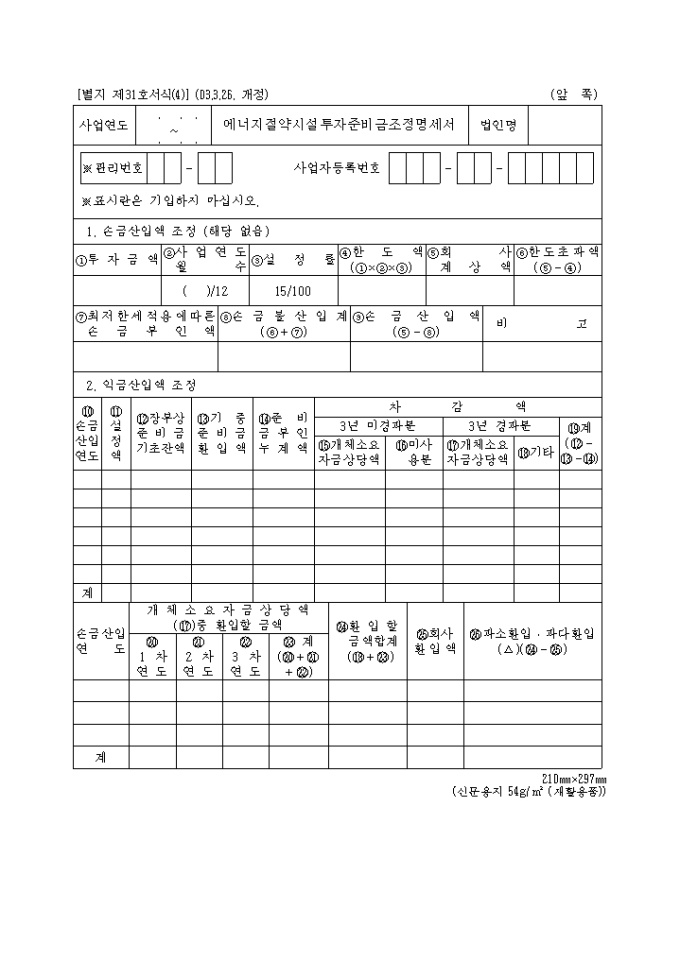 제31호(4) 에너지절약시설투자준비금조정명세서로 손금산입액 조정,손금산입액 조정