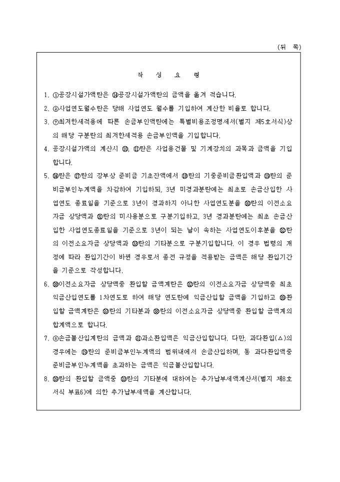 9,000원/월제31호(5) 공장지방이전준비금조정명세서로 손금산입액 조정,공장시설가액의 계산,익금산입액 조정을 기록합니다. (1999.5.24. 개정)