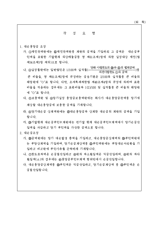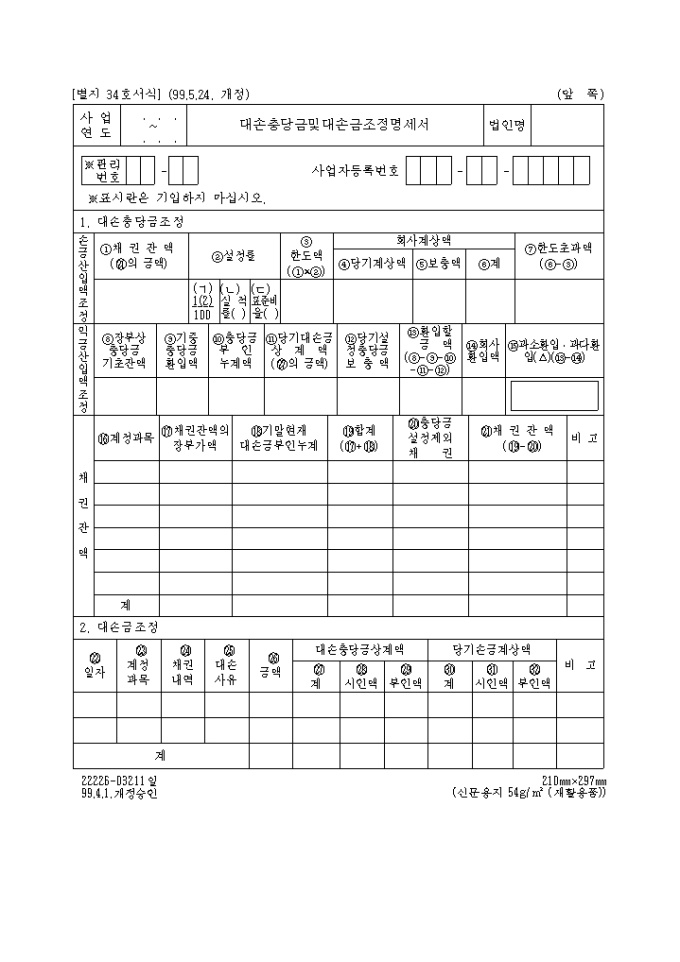 제34호 대손충당금 및 대손금조정명세서(1999.5.24. 개정)
